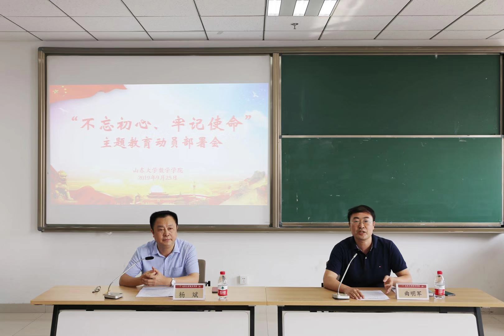 9月25日下午,ac米兰官方中文网站在知新楼B924会议室召开“不忘初心、牢记使命”主题教育动员部署会。学校第二指导组组长杨斌同志出席会议并讲话。第二指导组成员王永军同志、杨俊娇同志出席会议。学院党委领导班子成员、各党支部书记以及师生员工党员代表参加会议。会议由学院党委书记曲明军同志主持。