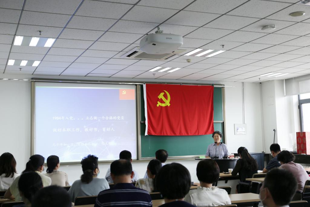 全国优秀教师、山东省教学名师,学院优秀党员代表秦静教授为大家上了一堂微党课。她从自己三十六年前入党的时刻谈起,分享了所在团队在疫情期间如何加强慕课建设的经验和体会。她认为,作为数学老师教书育人,应该传递正能量,做好课程思政。虽然不能直面抗击病毒,但做好本职工作,坚守课堂,也是上了一线。