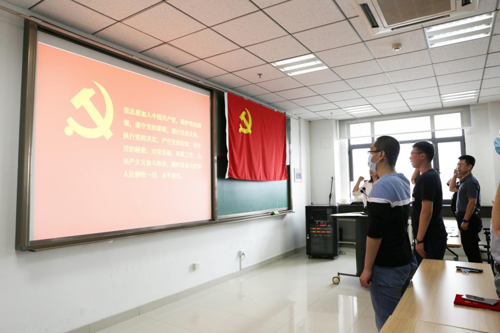 新入党的师生党员代表铿锵有力地表明了要努力做一名合格党员的态度和决心。大会最后,全体党员举起右手,面向党旗,重温了入党誓词。会议由学院党委副书记王苗雨主持。