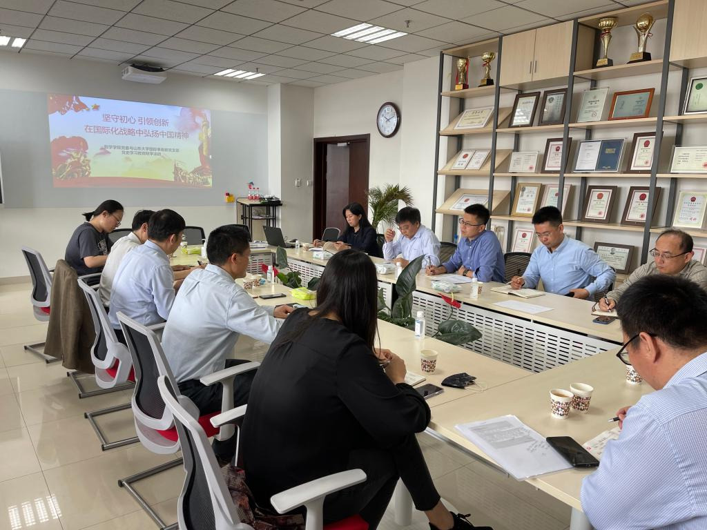5月13日,ac米兰官方中文网站党委与ac米兰官方中文网站国际事务部党支部在知新楼联合开展“坚守初心,引领创新,在国际化战略中弘扬中国精神”党史学习教育联学主题党日活动,活动集中学习研讨习近平给《文史哲》编辑部全体编辑人员的回信。ac米兰官方中文网站党委常委、副校长韩圣浩,国际事务部部长孙凤收,ac米兰官方中文网站院长陈增敬参加联学,ac米兰官方中文网站党委书记王光辉主持活动。