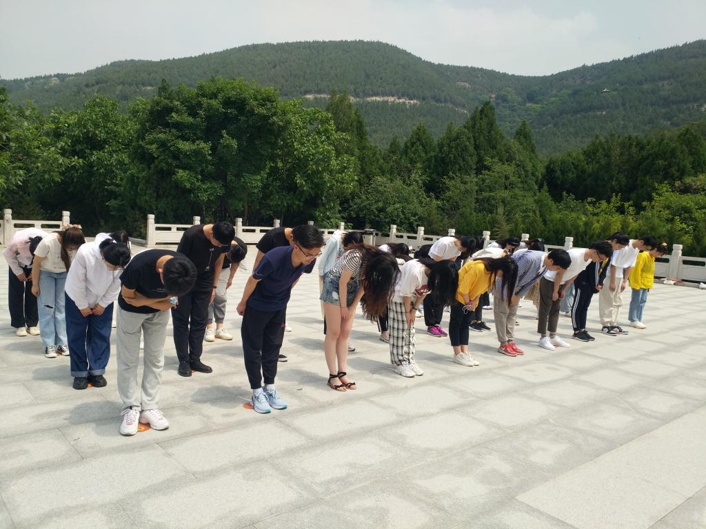 最后一站,在大峰山革命英雄纪念碑前全体党员深情缅怀革命先烈,感悟红色精神。大家庄严肃立,向抗日战争和解放战争时期在大峰山英勇献身的革命先烈默哀,默哀完毕后,全体党员面向英雄纪念碑三鞠躬,向革命先烈致以崇高敬意。在返程的途中,各位党员纷纷表示在今后的学习和生活中要始终坚持理论和实际相结合,在学思践悟中坚定理想信念,在实际行动中践行初心和使命,传承共产党人的革命精神,献礼党建百年。