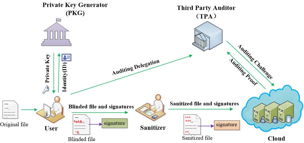 通过共享云存储服务,用户可以将数据存储到云端并与其他成员共享。然而,这些存储在云端的共享数据可能会包含用户的敏感信息。例如,存储在云端的供研究者研究的电子病历可能会包含病人的敏感信息(病人名字,电话号码,身份证号等)和医院的敏感信息(医院名字等)。如果直接把电子病历上传到云端供研究者下载使用,那么病人和医院的敏感信息则不可避免地被泄露给云服务器和研究者。该论文主要针对这个问题进行了研究,提出了一个基于身份的支持敏感信息隐藏的数据共享云存储完整性审计方案。这个方案不仅能够有效实现云存储数据完整性审计,还能支持在敏感信息被保护条件下的数据共享。也就是说,文件中的敏感信息可以得到保护,而其他信息可公开使用。