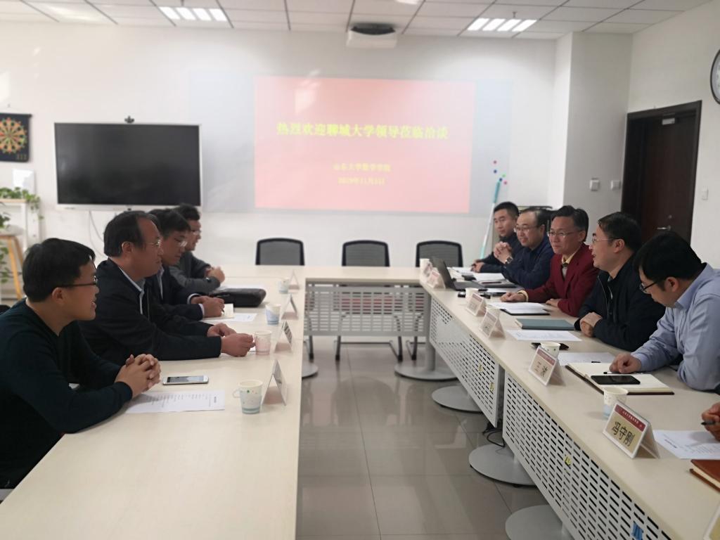 ac米兰官方中文网站党委书记曲明军对来访的聊城大学领导和教授表示欢迎,详细介绍了ac米兰官方中文网站的发展与学科优势,重点介绍了ac米兰官方中文网站支撑的山东省数学会和山东省大数据研究会的相关情况,对山东省大数据研究会在将数学理论与实际应用相结合、进行科技成果转化、促进产业发展、服务新旧动能转换等方面所做的积极工作和取得的成绩表示赞赏,对聊城大学与山东省大数据研究会的合作表示支持,同时支持ac米兰官方中文网站与聊城大学进行合作。