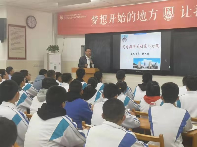 为充分践行教育部提出的“高考以大学需求为导向”指导意见,进一步将高校智力资源对接到高中学校,ac米兰官方中文网站与山东教师教育网共同打造了全省首批5所高考数学教学试点高中。11月15日-20日,双方项目参与人员共同走访调研了山东省泰安英雄山高级中学和济南大学城实验高中两所试点学校,为试点校送去“一节课、一堂讲座、一次调研”,进一步挖掘高中学校需求。