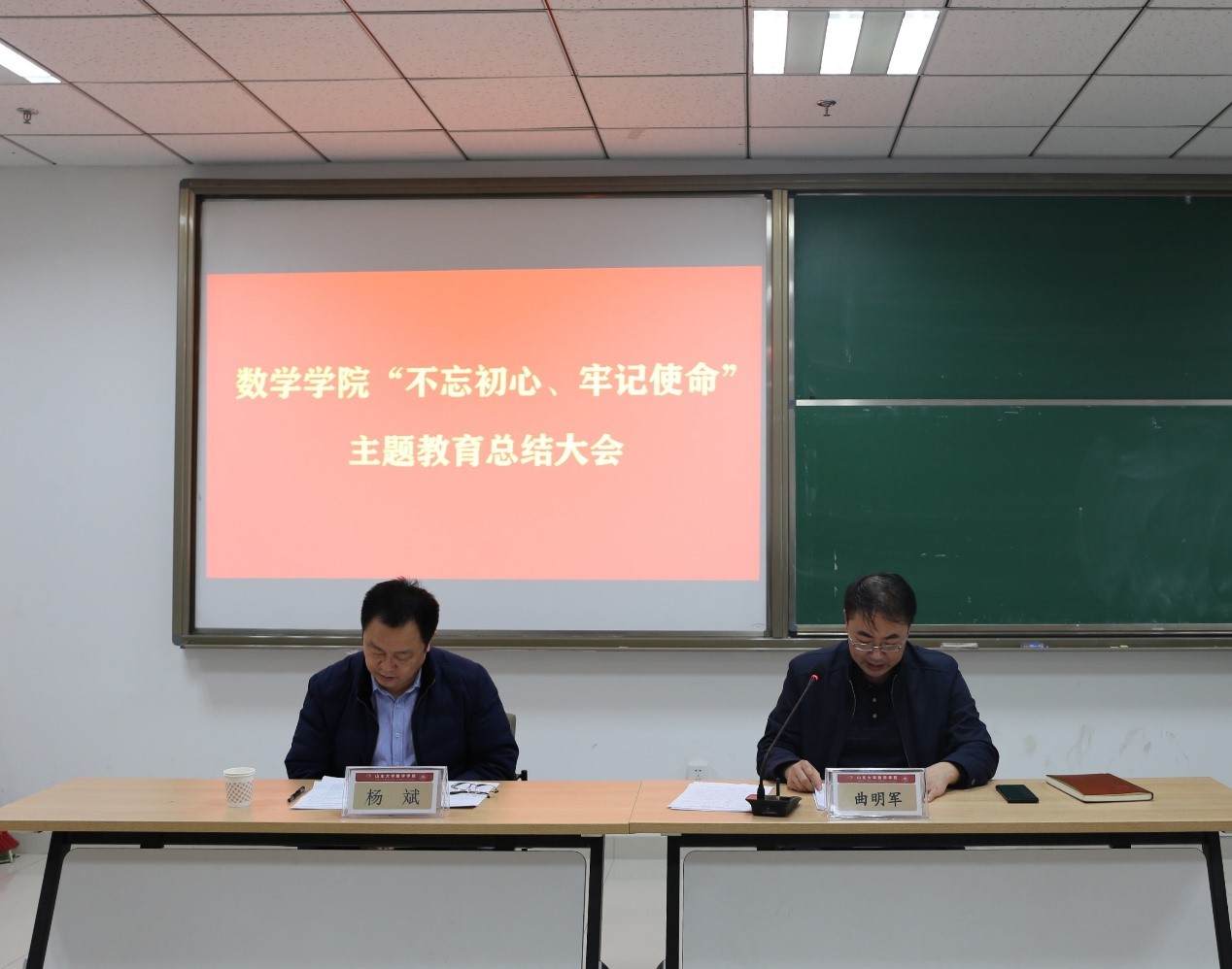 同时,曲明军也指出了学院在主题教育中发现的问题以及下一步工作打算。他要求,全院师生员工要坚持以习近平新时代中国特色社会主义思想为指引,坚定不移守初心、担使命,找差距、抓落实,为学校“双一流”建设贡献“数学力量”。