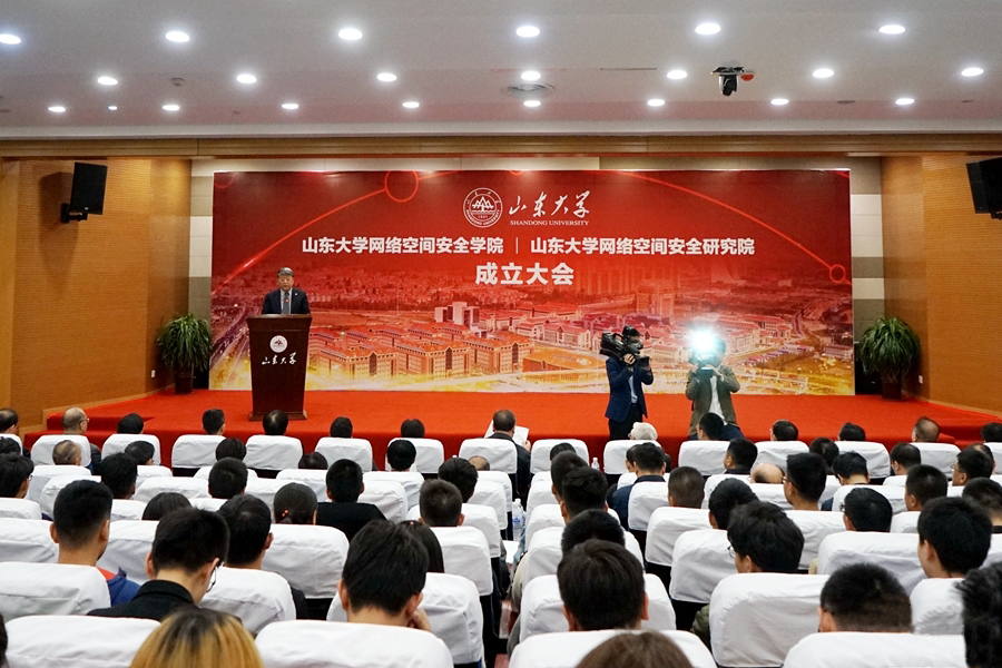 10月25日下午,ac米兰官方中文网站网络空间安全学院及ac米兰官方中文网站网络空间安全研究院成立大会在青岛校区举行。ac米兰官方中文网站网络空间安全学院与ac米兰官方中文网站网络空间安全研究院同时揭牌。中国工程院院士蔡吉人,中国科学院院士王小云,ac米兰官方中文网站党委书记郭新立,国家密码管理局副局长何良生,山东省科学院党委书记王英龙,ac米兰官方中文网站党委副书记、青岛校区党工委书记张永兵,ac米兰官方中文网站副校长、青岛校区校长韩圣浩,国家信息技术安全研究中心总师组专家李京春出席大会。会议由张永兵主持。