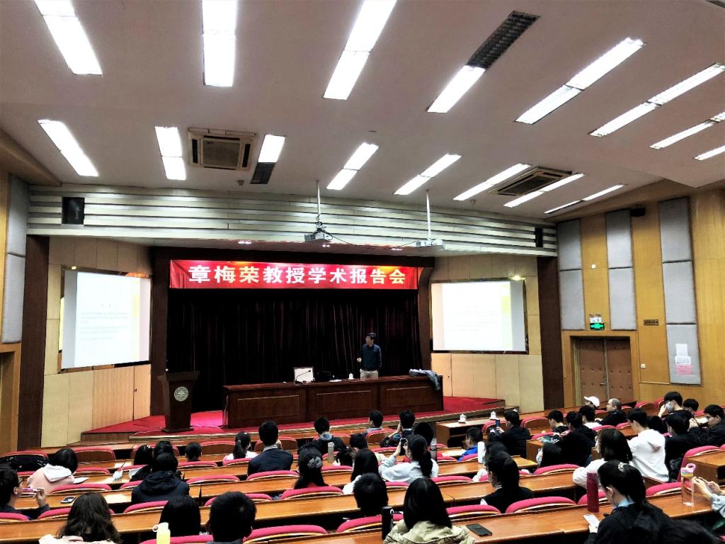章教授在讲座过程中沿着牛顿的《自然哲学的数学原理》中的思路,简要地还原牛顿是如何用微积分来发现万有引力定律的。之后,章教授又展示了一个与之相关的微积分题目,通过对此题目的讲解,进一步加深了同学们对于微积分的理解。互动环节中,大家就自己感兴趣的问题纷纷发言,章教授一一予以耐心解答,大家受益匪浅。此次讲座不仅加深了对微积分的理解与认识,也使听众在获取知识的同时领略了数学的魅力。最后,讲座在热烈的掌声中落下帷幕。