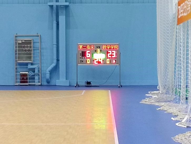 比赛初始,双方迅速进入竞技状态。我院队员主动出击,以熟练的动作迅速传球,直逼篮板,凭借出色的配合和迅速的回防将比分拉至11:0。比赛场面愈发激烈,氛围也愈发紧张。悬殊较大的比分令对方不甘示弱,不断进攻,但我院队员默契配合,攻守平衡,始终把握着比赛的主动权,最终上半场比赛以23:6的大比分领先结束。