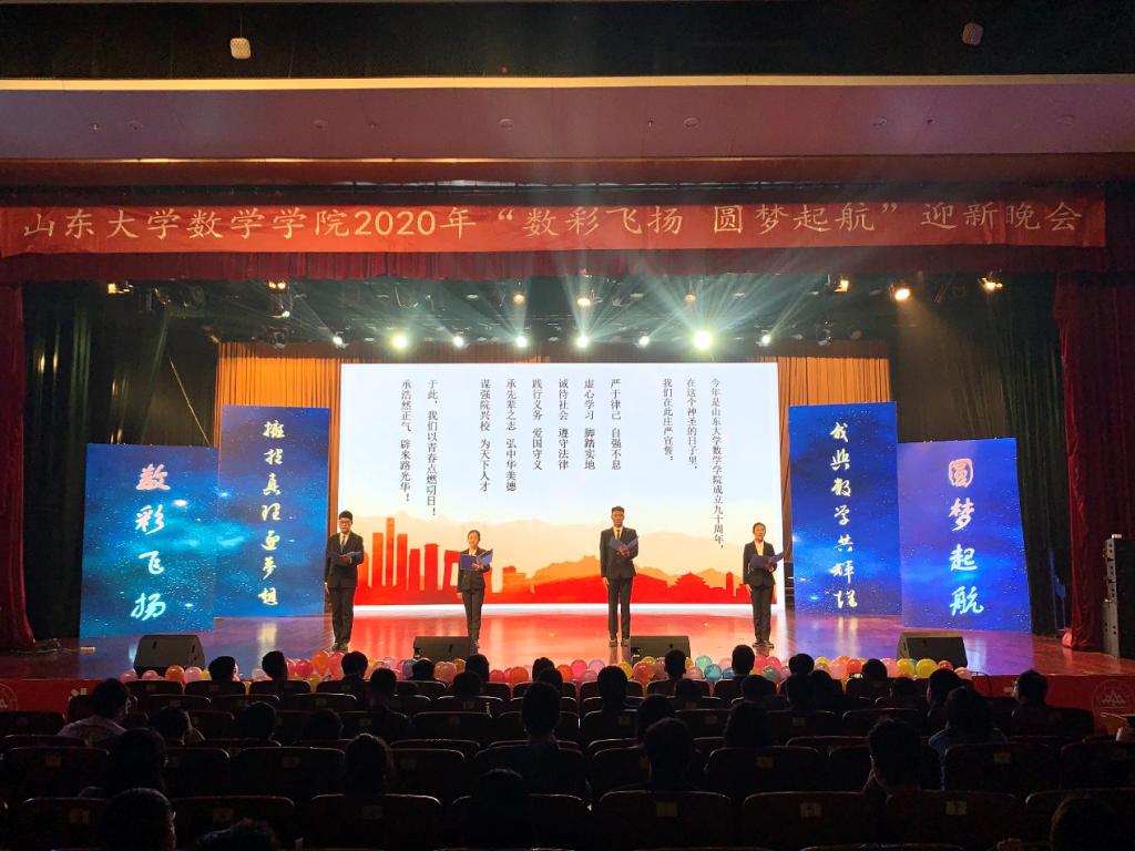 11月15日晚,ac米兰官方中文网站2020年“数彩飞扬 圆梦起航”迎新晚会在中心校区音乐厅隆重举行。学院党委书记曲明军,副院长王光辉、赵立璐,副书记王苗雨、路云生以及学院老师们和20级新生在现场观看了本次迎新晚会。晚会同时通过腾讯会议线上为数院的广大师生进行了现场直播。曲明军为本次晚会开场致辞,他提到2020年是不平凡的一年,2020级同学也是不平凡的一届,希望同学们能够不负韶华、努力进取。晚会节目多样、形式丰富、精彩纷呈,全程掌声迭起,笑语不断,与会嘉宾还为幸运观众抽取了奖品。