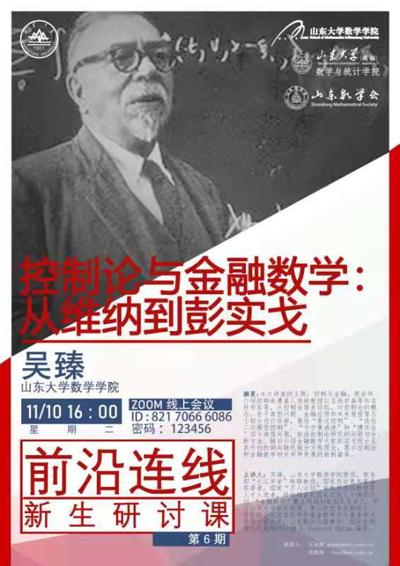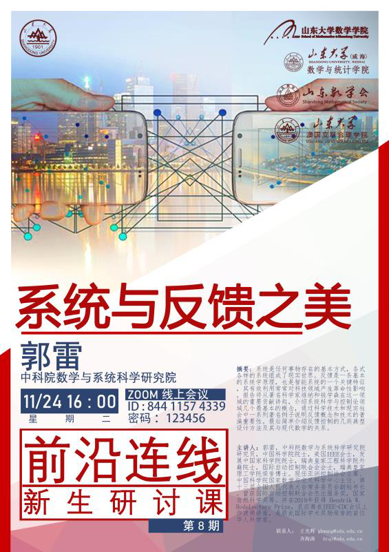 2020年11月,ac米兰官方中文网站成功举办第五至八期新生研讨课。新生研讨课由王光辉教授主持,面向中心校区ac米兰官方中文网站和威海校区数学与统计学院的大一同学,广受同学好评。课程邀请数学及其相关领域的著名专家,采用线上讲座的方式,介绍基础数学和应用数学的研究方向。同学们在聆听专家报告,与专家学者交流互动的过程中,拓宽了视野,培养了兴趣,树立了目标。