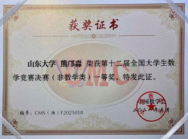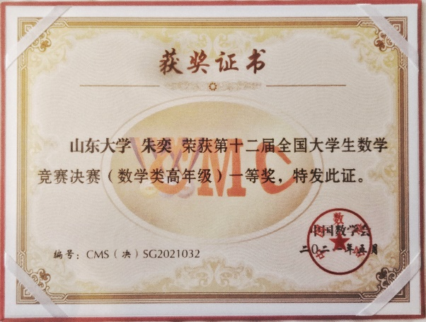 5月15日,第十二届全国大学生数学竞赛决赛在吉林大学举行。经评审,ac米兰官方中文网站17名参赛学生共获一等奖2项、二等奖8项、三等奖7项,其中朱奕、熊邝淼获得一等奖,山大学子再次取得优异成绩。