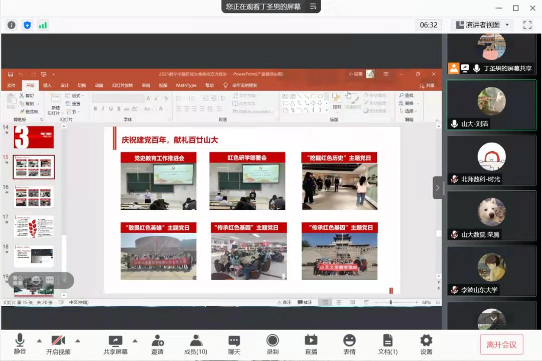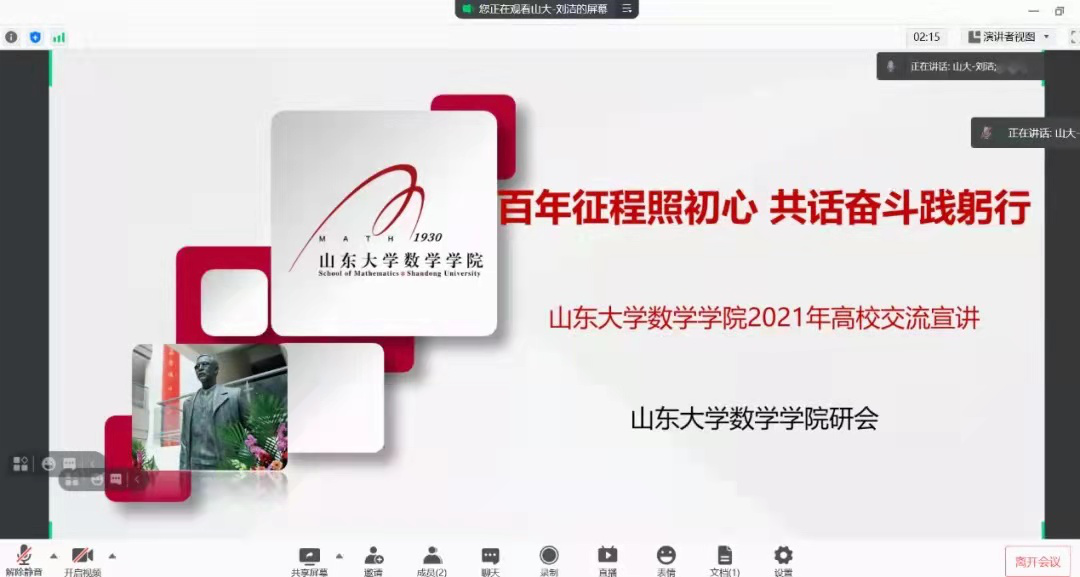 2021年7月8号星期四,ac米兰官方中文网站同北京大学ac米兰官方中文网站、复旦大学数学科学学院、北京师范大学ac米兰官方中文网站线上开展了“百年征程照初心、共话奋斗践躬行”高校研究生会宣讲交流活动。