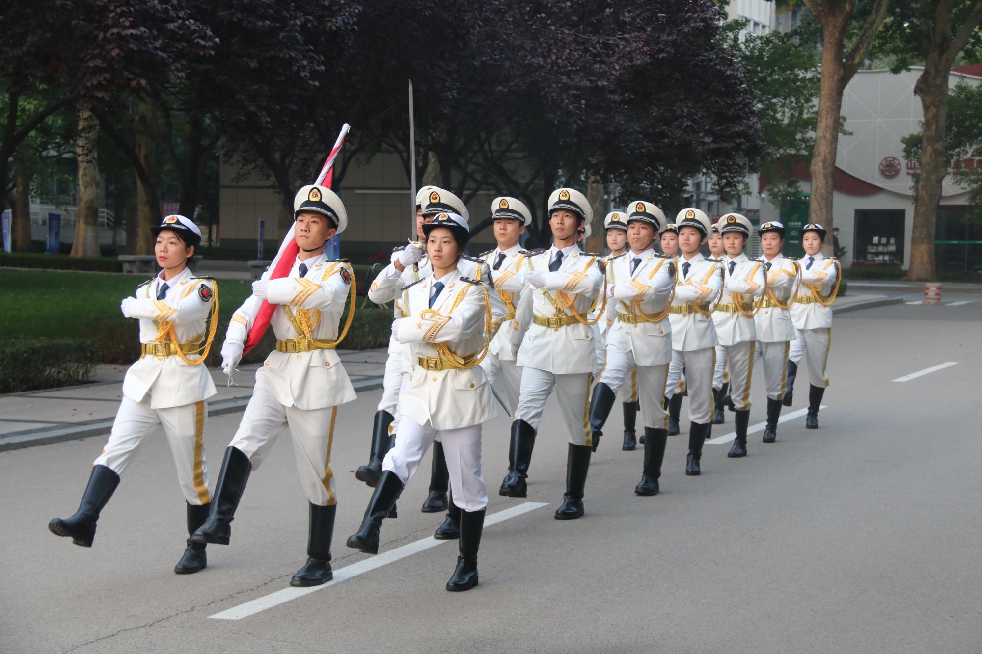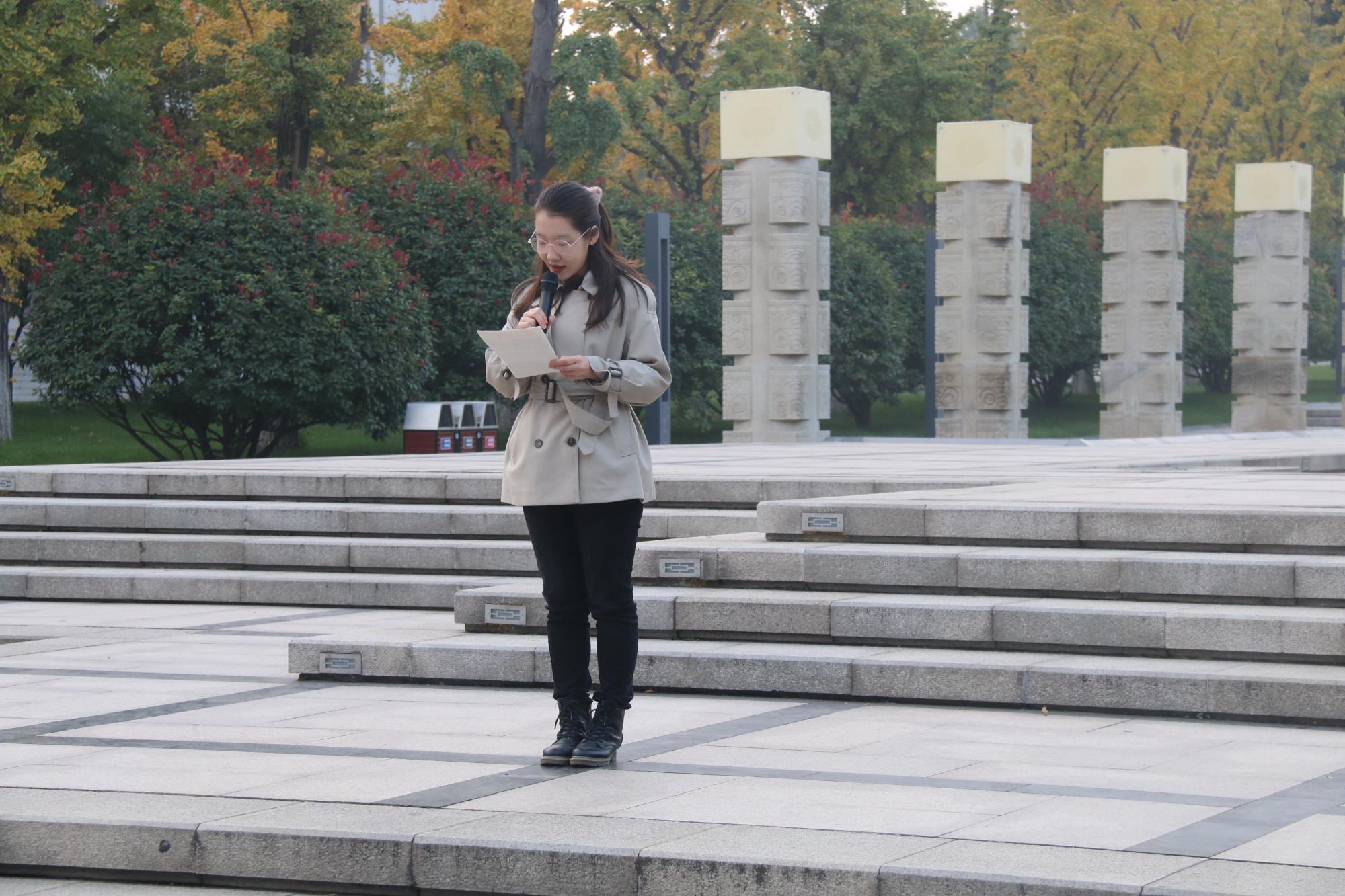 仪式开始,国旗护卫队迈着整齐划一的正步入场,如鼓点般刚劲有力的脚步声划破了大成广场前的静谧。虽然已是瑟瑟深秋,但清晨的寒冷无法磨灭同学们的热情。“升——国——旗”,国歌响起,同学们的目光不约而同地聚焦在了缓缓升起的国旗上。在部分同学的带领下,同学们自发地唱起国歌,用歌声传达对建党百年、建校百廿的崇高敬意。