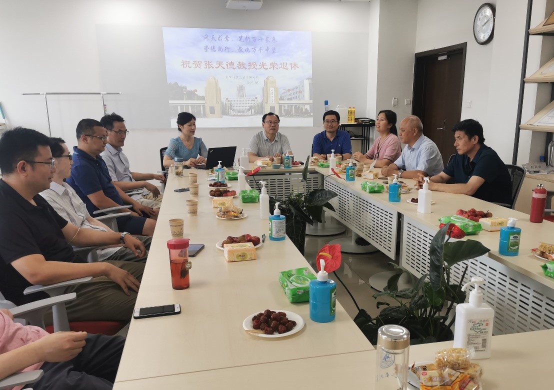 2022年6月24日,科学计算与软件研究所的老师们、特邀嘉宾学院党委王苗雨副书记齐聚一堂,在知新楼B808举行了茶话座谈会,祝贺张天德教授光荣退休。荣休仪式由科学计算与软件党支部书记刘蕴贤教授主持。
