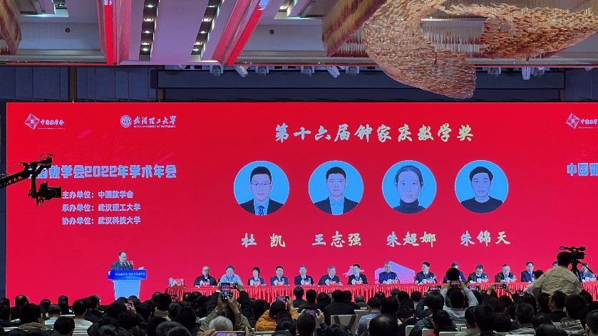 2023年2月18日至22日,中国数学会2022年学术年会在湖北武汉召开。19日上午,大会开幕式暨颁奖典礼上公布了中国数学会第十六届华罗庚数学奖、第十九届陈省身数学奖和第十六届钟家庆数学奖获奖名单。ac米兰官方中文网站杜凯副研究员获得了第十六届钟家庆数学奖,以奖励其在平均场正倒向随机博弈与控制方面做出的贡献。这是ac米兰官方中文网站学者首次获得该奖项。