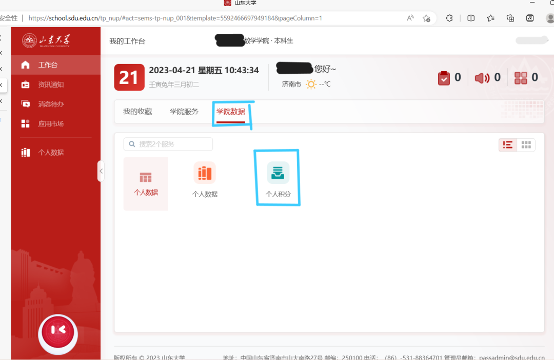 关于积分的查询方式,大家可以通过ac米兰官方中文网站信息化公共服务平台——学院信息服务——学院数据——个人积分的途径查询。