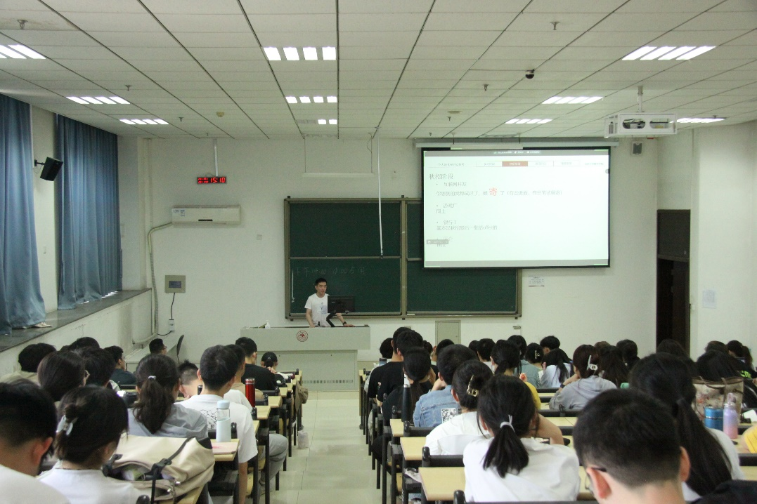荣腾、高剑、钱辰、宁春晖、朱殷欣、邢晓莉六位优秀学生代表,分别围绕互联网大厂、金融机构、国企、央企等进行求职经验交流和心得分享,详细介绍了暑期实习、日常实习、春招、秋招等不同时间节点的准备工作。他们建议2022级有就业想法的同学们早做准备,从多个渠道关注就业信息,选择适合自己的职业方向,同时要保持积极乐观的心态,减少内耗,多给自己试错机会,不断提高自己的专业素养和职业能力。