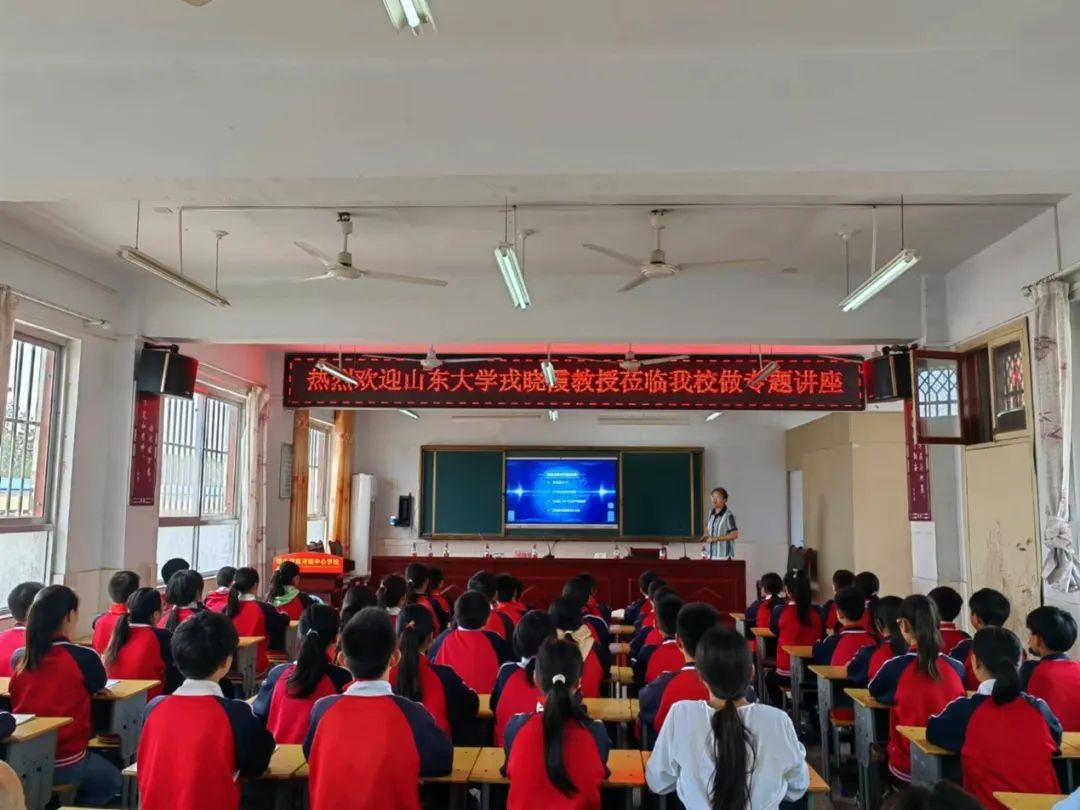 7日上午,工作组一行来到双河镇中心小学,与学校师生就科教帮扶进行交流,初步达成帮扶意向。戎晓霞教授以“黄金分割与优选法故事”为题为双河镇中心小学师生开展科普讲座。讲座从大家熟知的维纳斯雕像引入,深入浅出,兼顾趣味性和科学性,博得在场师生的阵阵掌声。