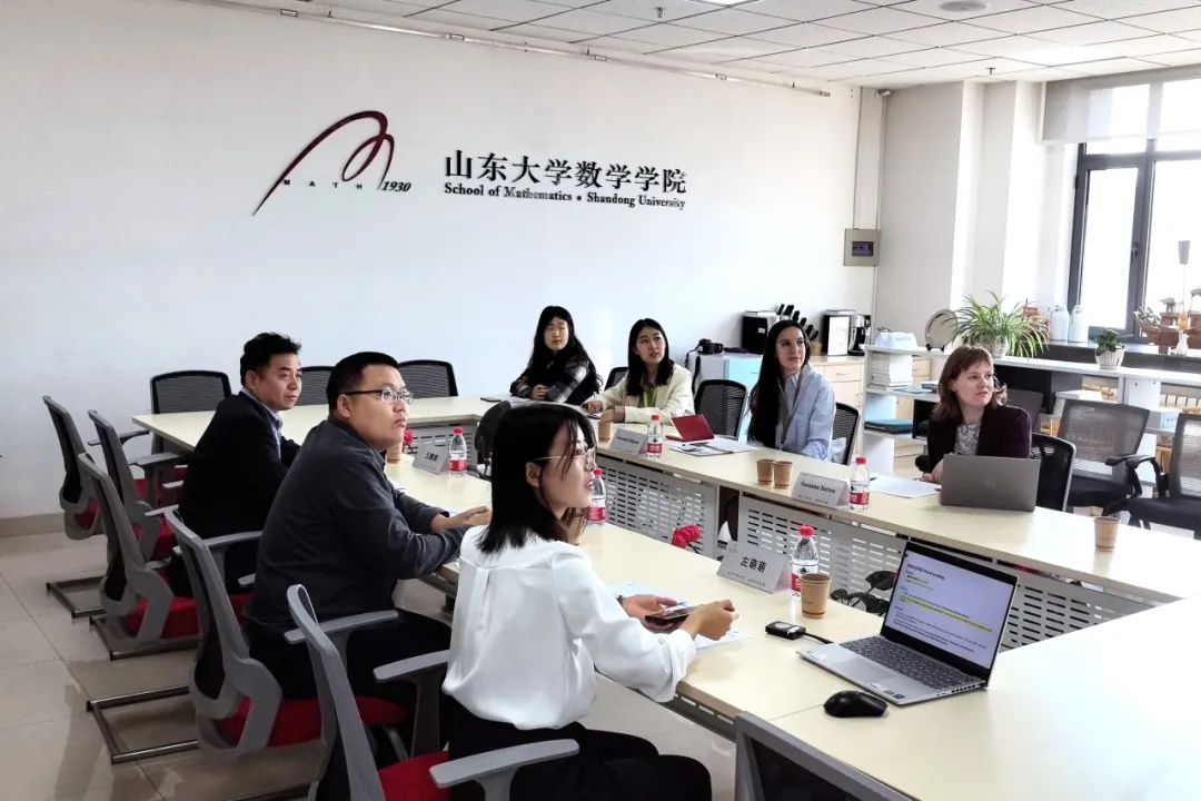 在与布里斯托大学代表团的交流座谈会上,副院长聂天洋就数院概况、科学研究、师资队伍与平台建设、人才培养与国际化四个方面对学院进行了整体介绍,副院长王鹏辉从专业设置、特色培养方式、学生规模、海外经历比例等角度简要说明了学院的本科生教育情况。布里斯托大学(University of Bristol,UOB)留学中心项目官员Florencia Migone和国际化办公室项目官员Susanna Batten回顾了两校合作历史,介绍了布里斯托大学数学系概况、“2+2”、“3+2”、“3+1”等人才培养模式以及未来的合作愿景。