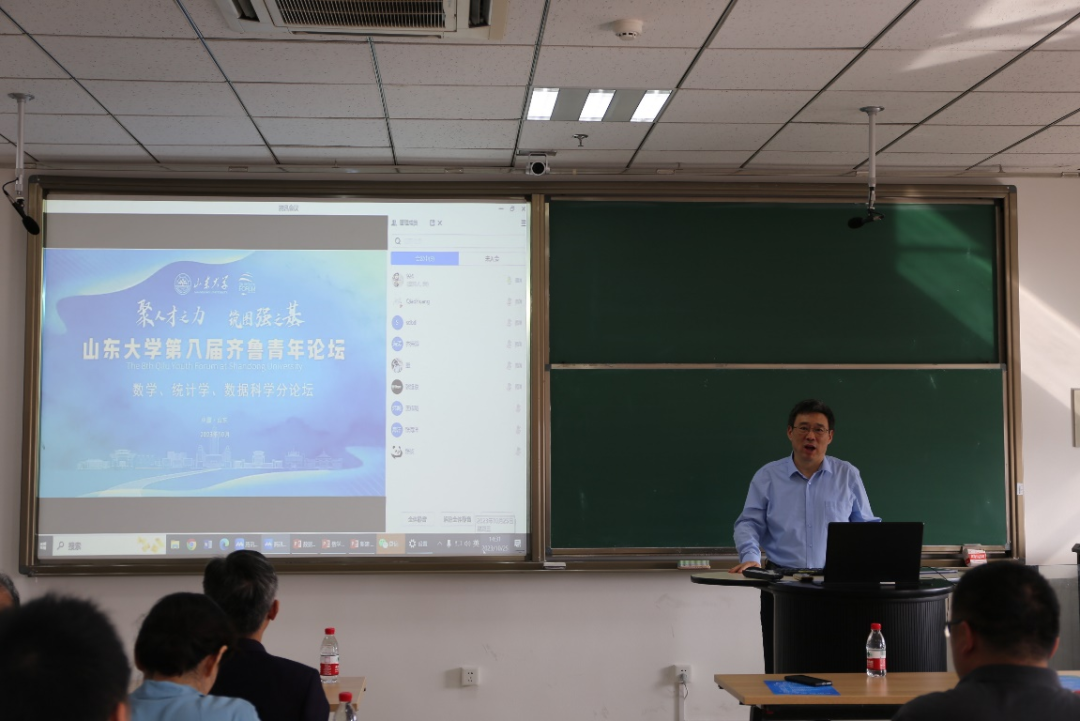 10月25日下午,第八届齐鲁青年论坛数学、统计学、数据科学分论坛隆重开幕。ac米兰官方中文网站党委常委、副校长、ac米兰官方中文网站院长、数学与统计学院院长吴臻出席开幕式,中泰证券金融研究院常务副院长嵇少林、数学与统计学院常务副院长齐海涛及各单位领导班子部分成员参加分论坛开幕式,ac米兰官方中文网站副院长聂天洋主持开幕式。