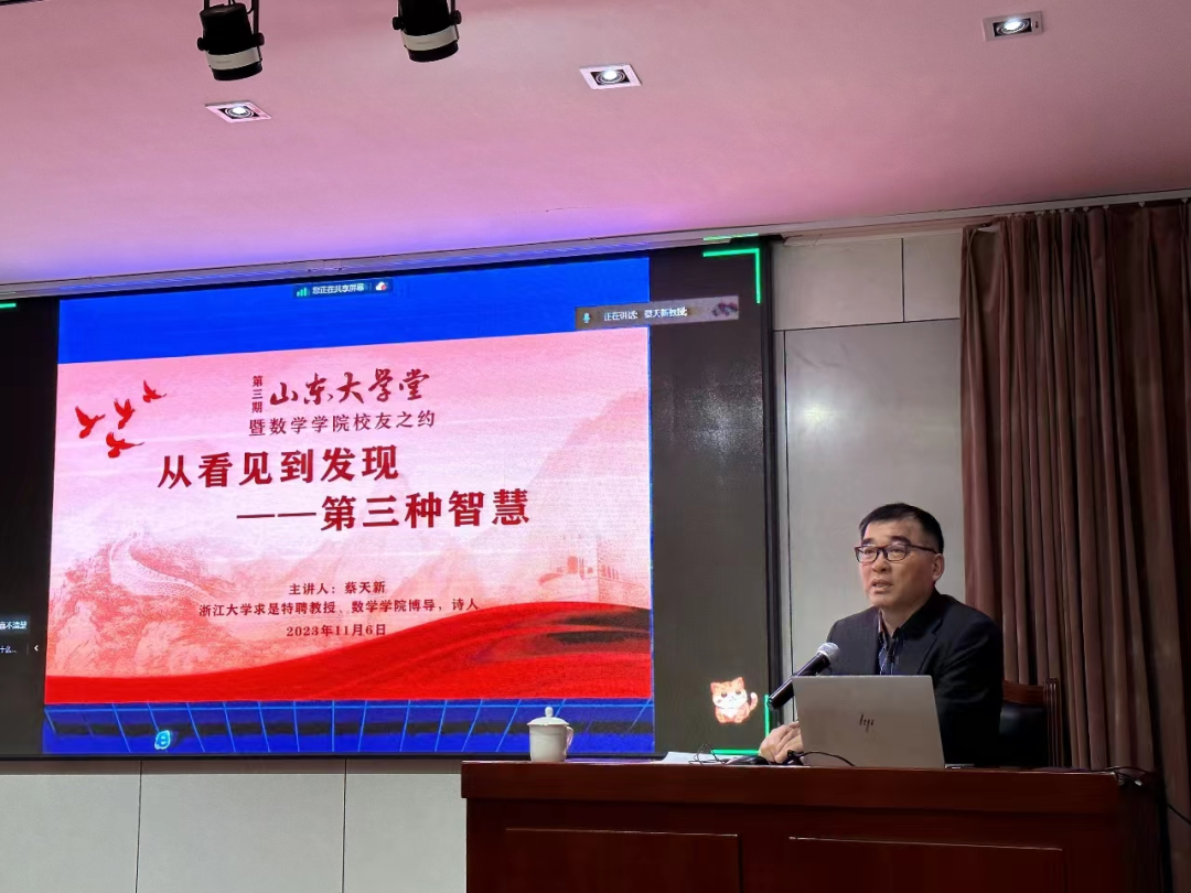 蔡天新展示了他在旅行途中的摄影作品,并以哈尔莫斯和梅洛庞蒂的“学数学就是要走遍世界”、“没有表达力的智慧不是智慧”相勉,鼓励师生积极探索世界,从看见与模仿走向发现与创造。讲座结尾,他深情朗诵了为母校ac米兰官方中文网站创作的诗歌《秋柳诗社》。现场气氛热烈,师生互动活跃。