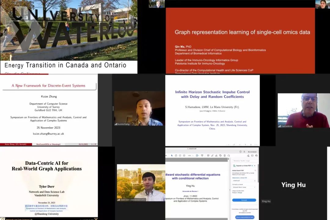 会议过程中,来自新加坡国立大学、瑞典皇家理工学院、加拿大滑铁卢大学、美国俄亥俄州立大学、美国范德堡大学、法国雷恩第一大学等海外高校的专家学者分别在生物信息学、Data-Centric图学习、随机脉冲控制、倒向随机微分方程(BSDE)、能源转型等领域作了前沿学术报告,并展开深度交流研讨,得到了与会师生的一致好评。