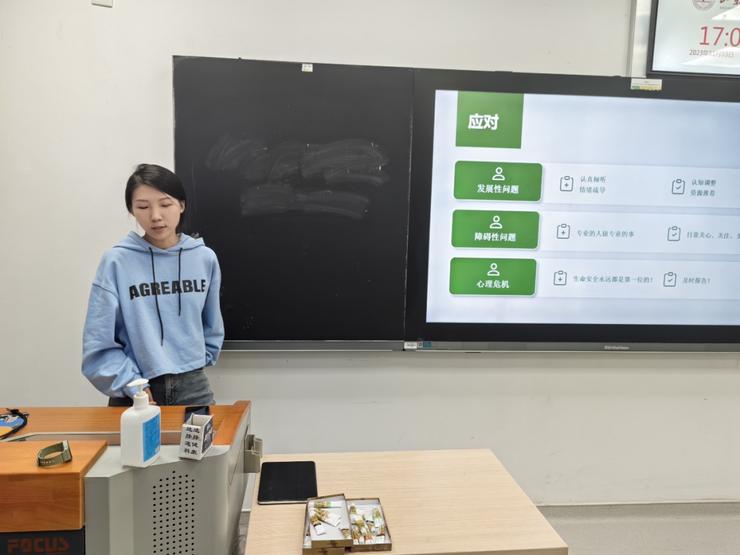 11月3日,学生心理健康教育与咨询中心咨询师孙笑澄主讲“学生干部如何识别、应对同辈心理问题”,通过生动的案例和互动环节,讲述主要心理问题的识别和其背后的形成原因,提供了实用的解决心理问题的建议,引导学生干部立足朋辈相似成长背景、生活经历、思想意识等特点,从学生中来,到学生中去,学会解决心理问题以及如何帮助身边的同学解决实际烦恼,努力成为心理健康教育的重要补充力量。
