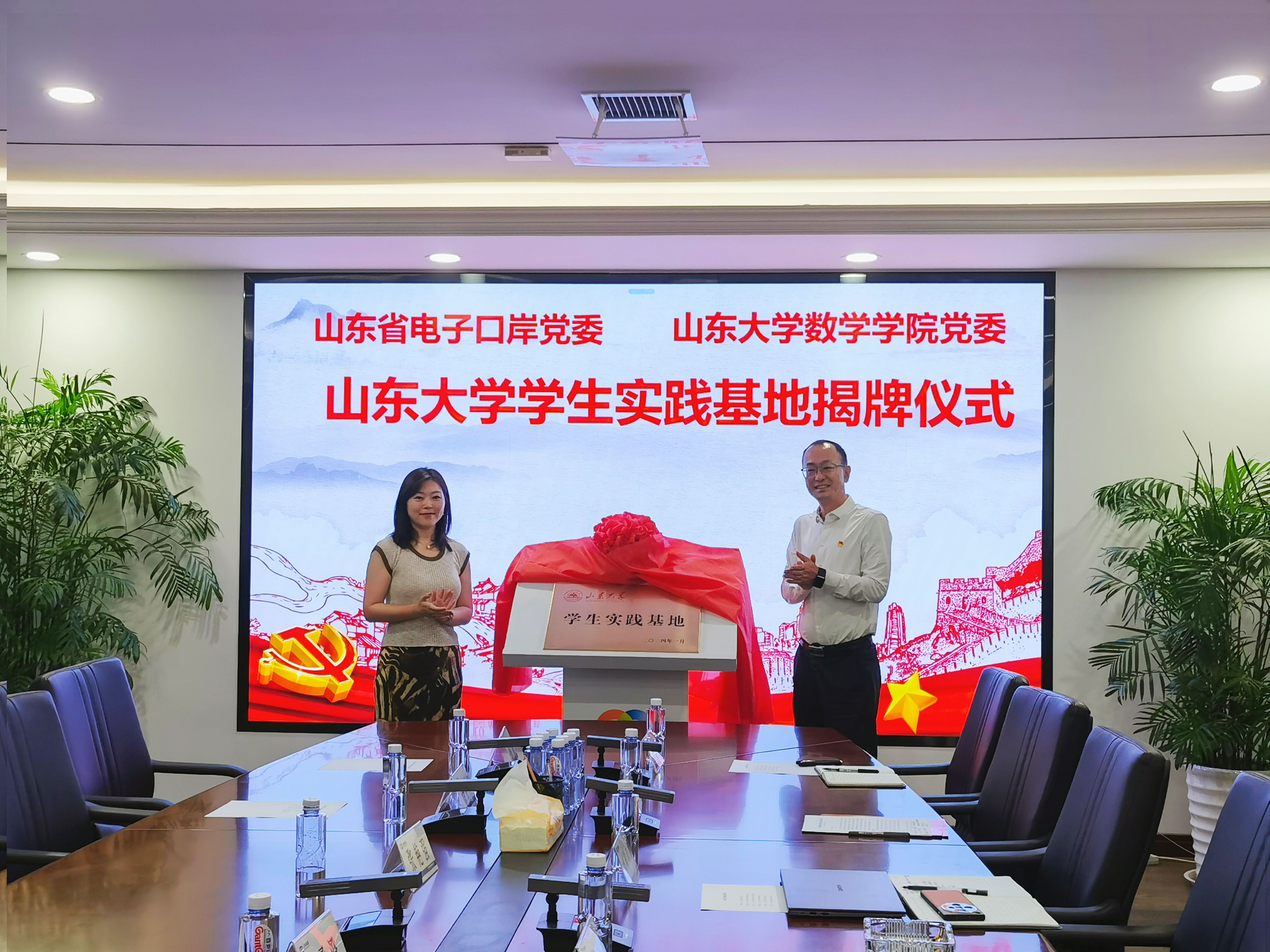 7月16日,ac米兰官方中文网站与山东省电子口岸有限公司举行“ac米兰官方中文网站学生实践基地”揭牌仪式。ac米兰官方中文网站团委副书记郑柔澄、ac米兰官方中文网站党委副书记张艳强,山东省电子口岸有限公司党委书记、董事长岳智飞,综合管理部部长、政务服务中心主任,汇贸公司执行董事、总经理李艳猛,党委组织部(人力资源部)部长刘婧孜出席活动。