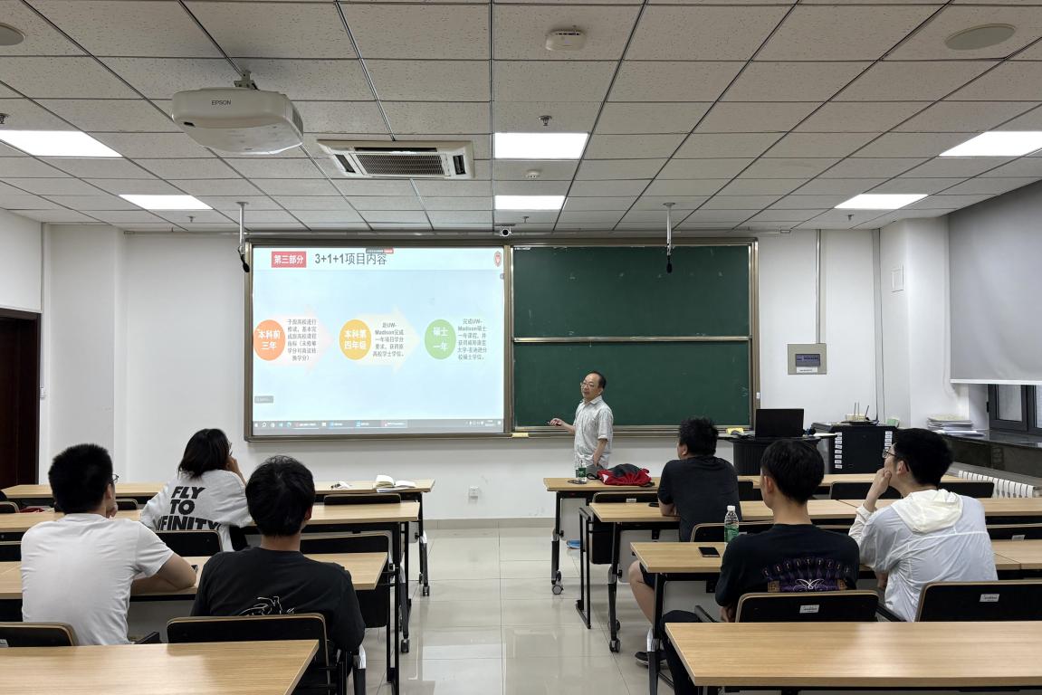 会后,威斯康星大学麦迪逊分校与ac米兰官方中文网站数学专业“3+1+1”联合培养项目宣讲会在ac米兰官方中文网站成功举办。杨同海为与会师生全面介绍了威斯康星大学麦迪逊分校数学系本硕3+1+1及硕士项目优势、申请条件、费用等,并在答疑环节针对项目录取条件、留学选择等问题进行耐心解答。宣讲会采取线上、线下相结合的形式,ac米兰官方中文网站、数学与统计学院师生代表参加会议。