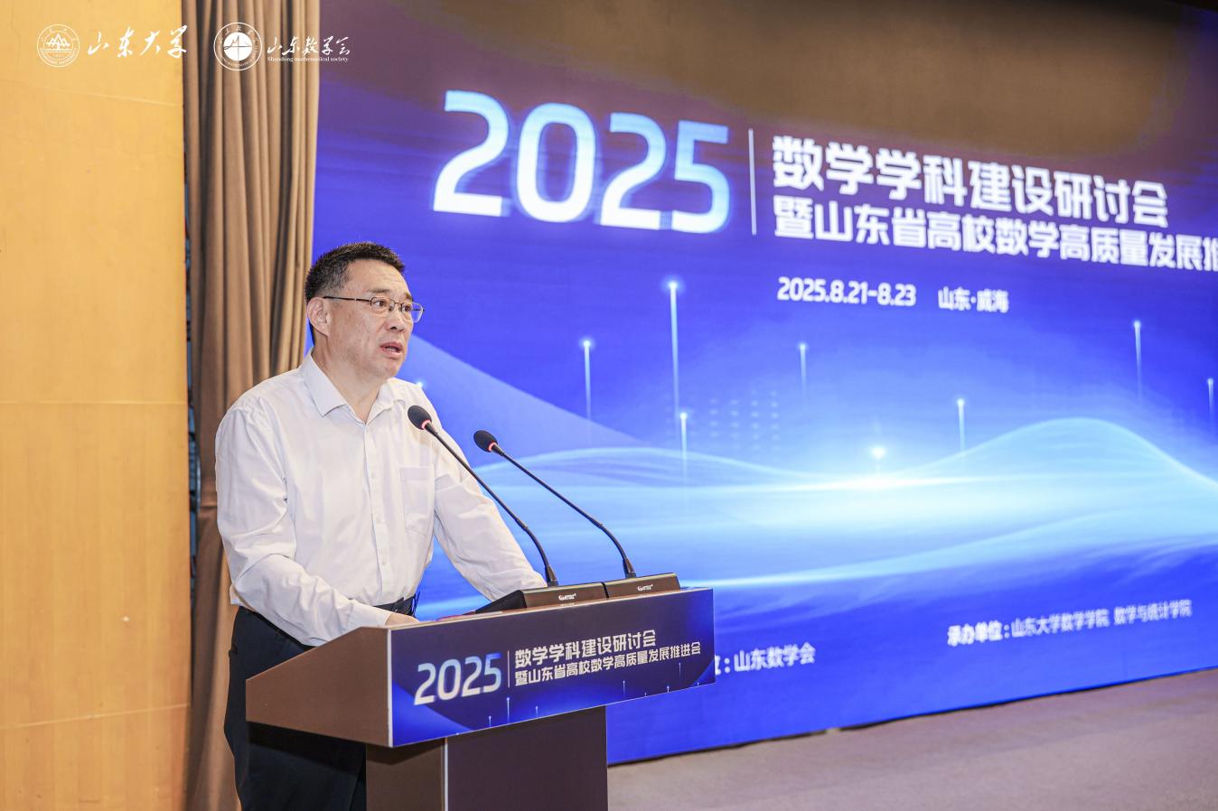 2025年8月22日-23日,ac米兰官方中文网站在威海举办2025年全国高校数学学科建设研讨会暨山东省高校数学高质量发展推进会。ac米兰官方中文网站常务副校长吴臻致辞并作大会报告,中共上海市委党校党的建设教研部罗俊丽教授作大会报告,山东航空学院党委副书记、校长李伟年教授,青岛科技大学副校长李金红教授出席会议。